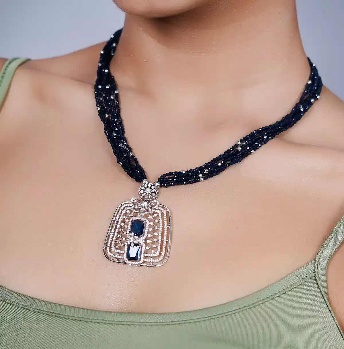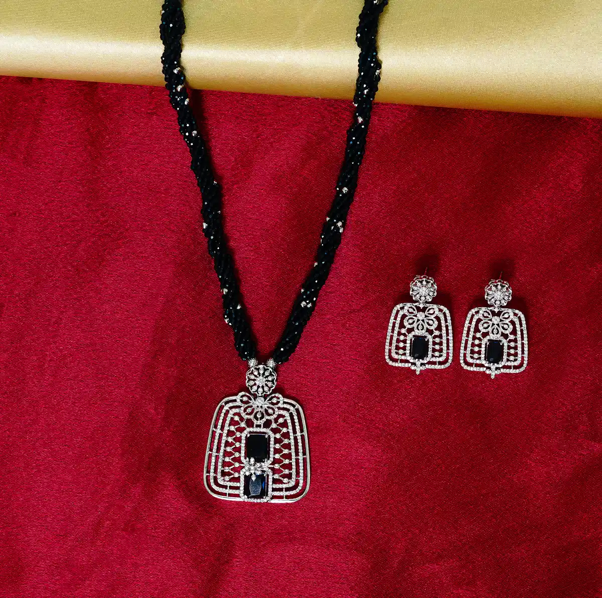 Contrast is the ultimate luxury. Featuring hand-strung black beads and artisan-crafted silver filigree, the Noir Royale set is an exquisite balance of shadow and light. Pure Silver. Pure Elegance.