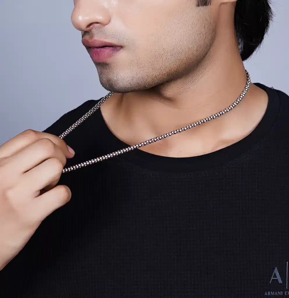A symbol of quiet strength and enduring style. Expertly crafted in 925 Pure Silver, this heavy-gauge chain features rounded, bead-like links that catch the light with every movement. Whether worn as a solo statement piece or paired with a heavy pendant, its substantial weight and high-polish finish make it a cornerstone of the modern man's wardrobe.
