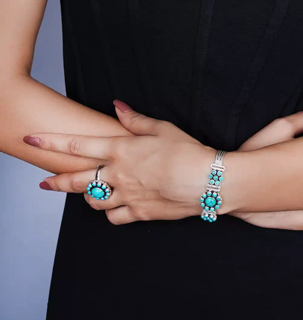 A delicate bloom of turquoise set in pure silver, Aqua Bloom adds a soft pop of colour and effortless elegance to your everyday and evening looks.